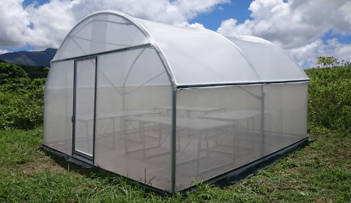 Pour des zones à risques cycloniques, nous proposons des options avec structures renforcées qui permettent de sécuriser les infrastructures et les cultures.