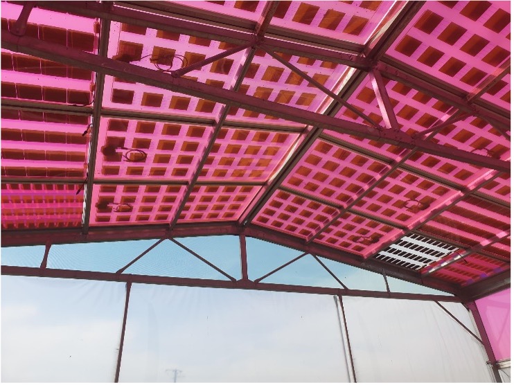 - Une homogénéité parfaite dans la répartition de la lumière à l’intérieur de la serre via l’utilisation de panneaux à transparence sur 100%M de la toiture.