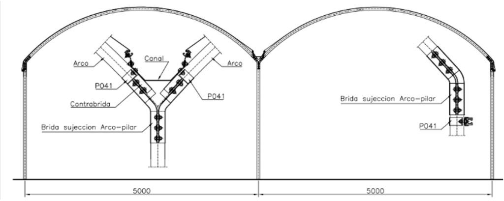 La structure standard est adaptée à la norme européenne EN 130331-1 « Greenhouses : design and Construction Part 1 : Commercial Production Greenhouses » et à la norme espagnole UNE-EN 13031-E.