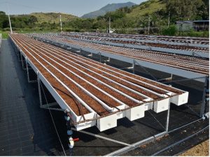 La gouttière Goponic installée sur tables est l’outil idéal pour des cultures de légumes feuilles surtout là où le sol de ne permet pas de cultiver en pleine terre comme chez ce maraicher de Paita.